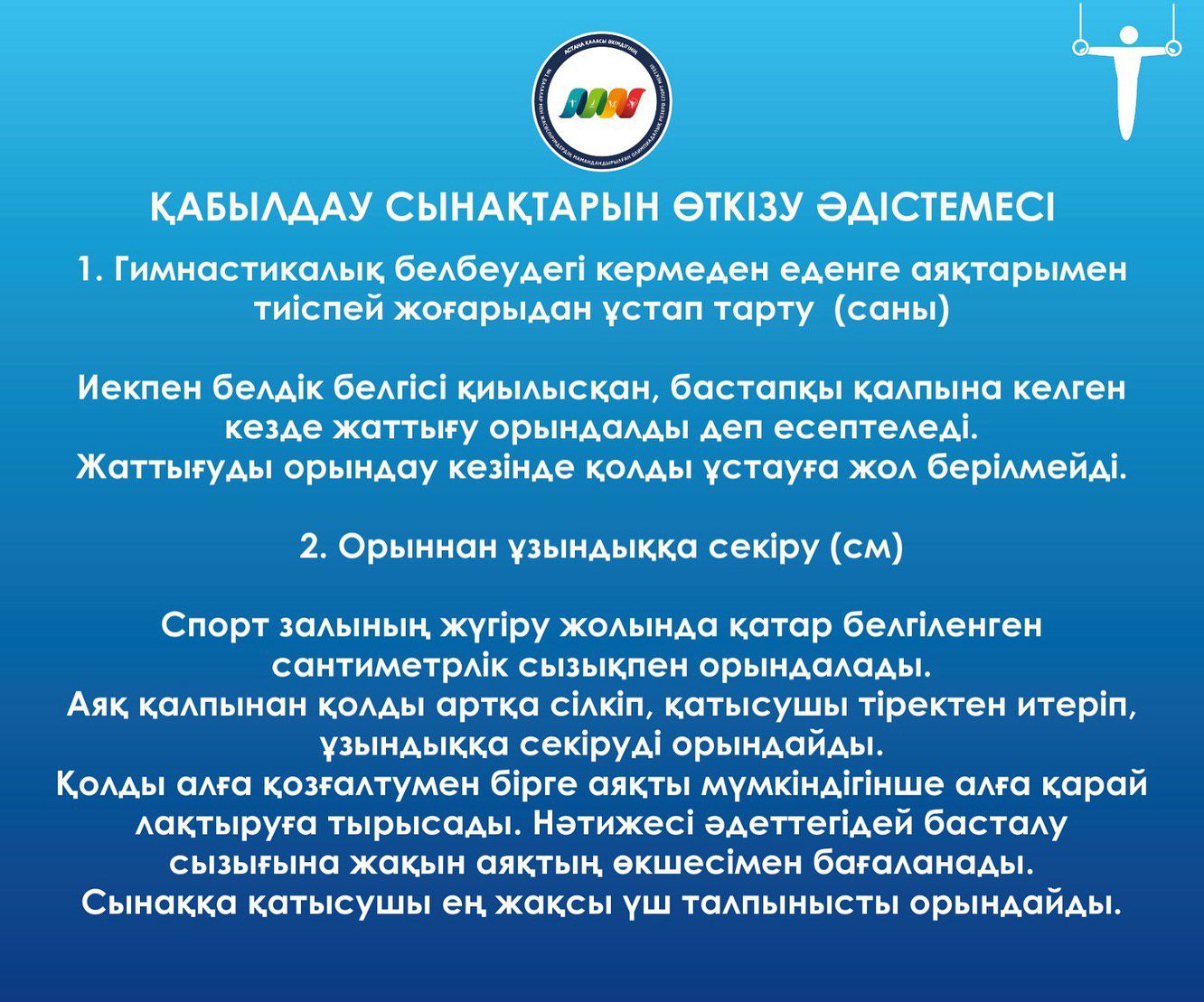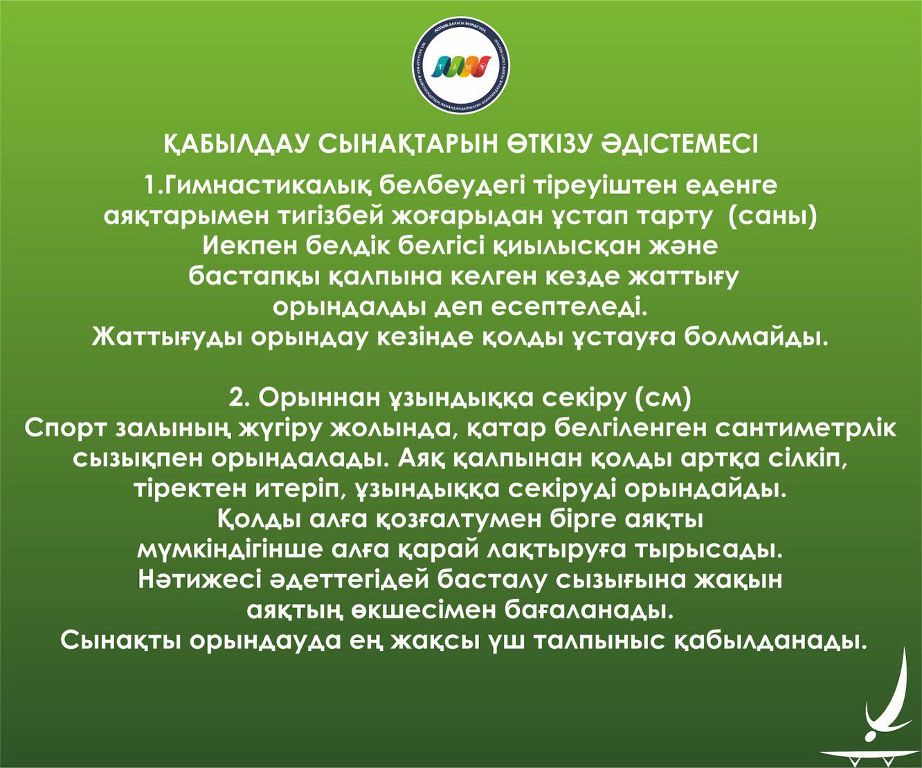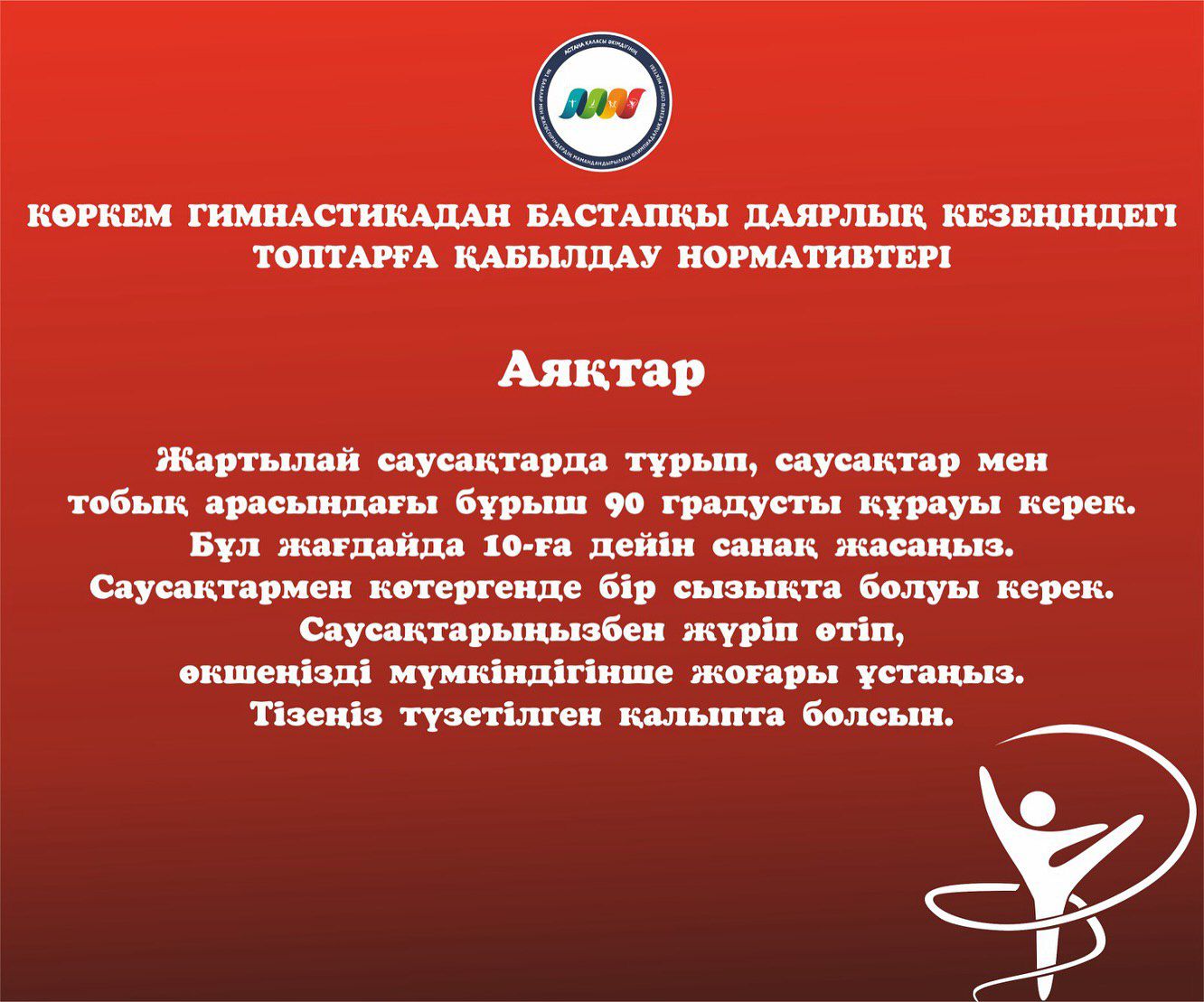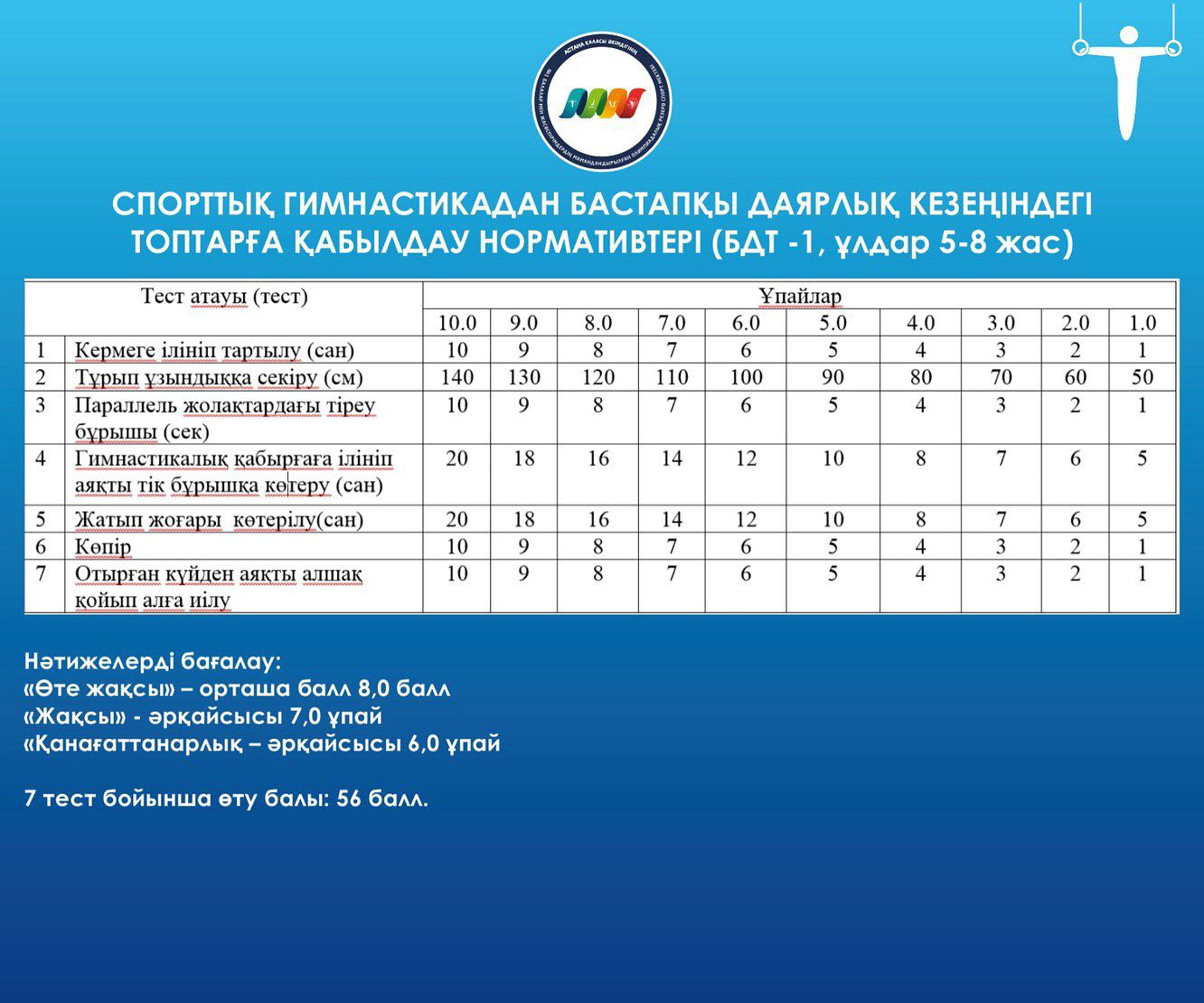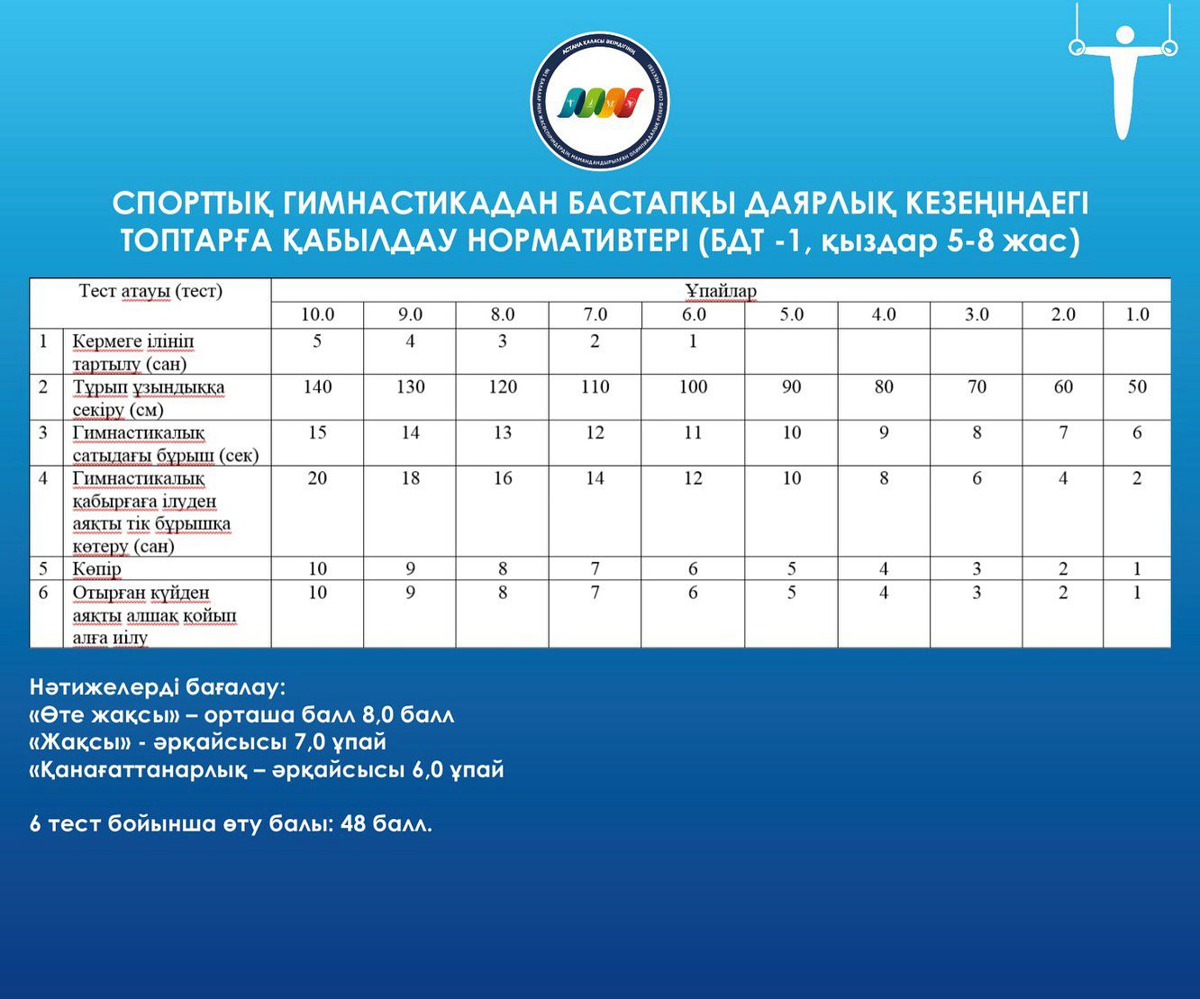 ЖАЛПЫ ЖӘНЕ АРНАЙЫ ДЕНЕ ШЫНЫҚТЫРУ ДАЯРЛЫҒЫ БОЙЫНША СПОРТТЫҚ ГИМНАСТИКАДАН БАСТАПҚЫ ДАЯРЛЫҚ КЕЗЕҢІНДЕГІ ТОПТАРҒА ҚАБЫЛДАУ НОРМАТИВТЕРІ